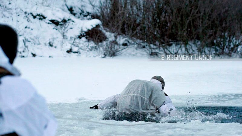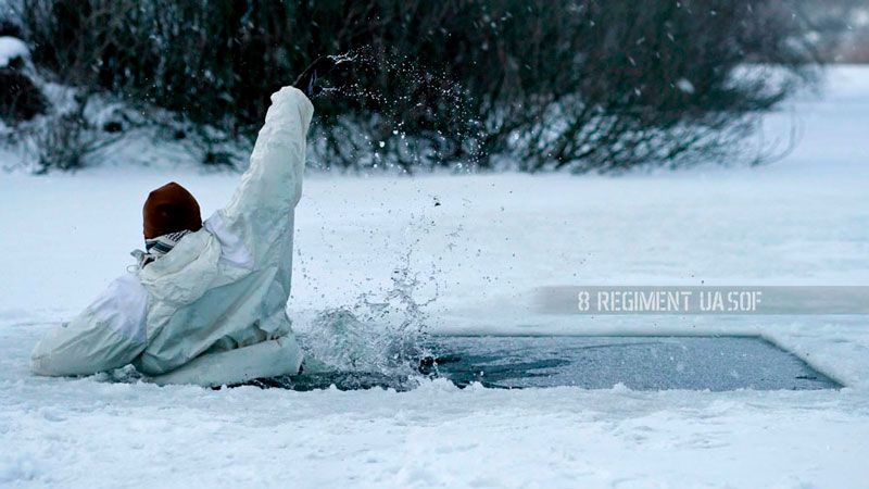 Оператори підрозділу Сил спеціальних операцій ЗСУ відпрацювали алгоритм дій у разі провалу під кригу. Також тренувалися надавати допомогу потерпілому та евакуювати його з місця події.