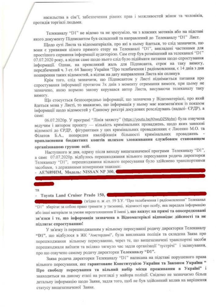 Так авто NISSAN NP 300 із державними номерними знаками (AE 7689 HM) та Toyota Land Cruiser Prado 150 (AE 7245 MC) прямо та опосередковано пов'язані із Геннадієм Корбаном. Докази щодо прямого зв’язку юристи телеканалу надали у офіційному листі-відповіді.![]()