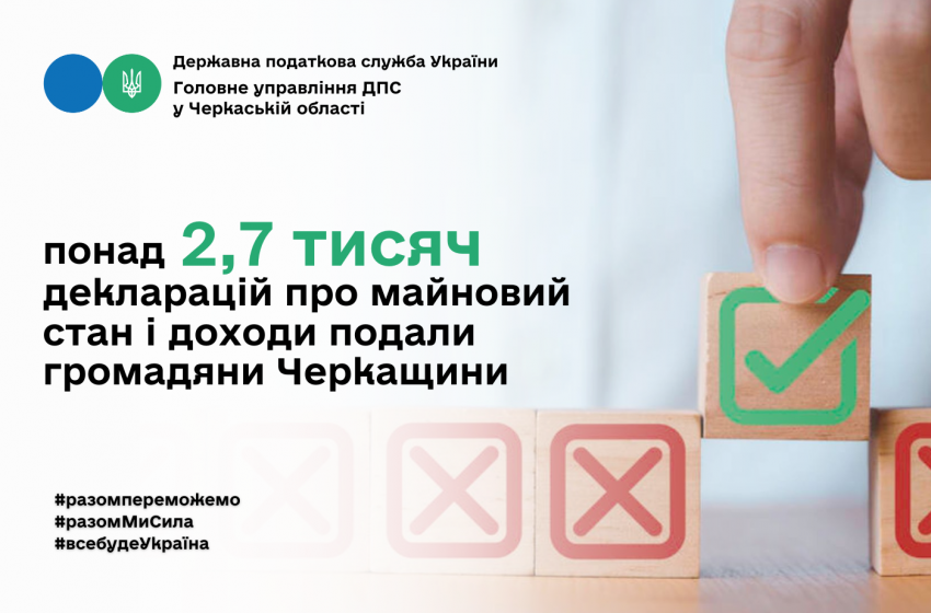 На 1 березня цього року до Головного управління ДПС у Черкаській області громадяни подали понад 2,7 тисячі декларацій про майновий стан і доходи за 2023 рік. Загальна сума задекларова