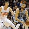 Після чималої кількості хибних кидків обох команд, рахунок відкрити вдалося важкому форварду "Фінікса" Маркіфу Моррісу. У відповідь гостям, досвідчений гравець "Гріззліс" Зек Рендольф, тричі відправив помаранчевого у ціль. Після цього єдиний українець в НБА Олексій Лень, отримав м’яч на середній дистанцій та на дриблінгу практично позбувся від опіки найкращого захисника 2013 року Марка Газоля і закинув легкі 2 очки. Однак Рендольф демонстрував неймовірні результати – американець здобув усі 12 очок для "Мемфіса", після чого наставник "Санз" Джеф Хорнасек взяв тайм-аут. Невисокого зросту захисник "Фінікса" Айзея Томас, вдало увійшов у гру і першим дотиком до м’яча надіслав його у ціль 18-9. Один із лідерів гостей – словенець Горан Драгіч, у своїй улюбленій манері завершив двічі атаки колективу (з проходу).