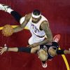 Яскраві команди Східної конференції розпочали баталію з кількох втрат та хибних кидків. Перші очки в матчі були записані на прізвище російського центрового у складі "Кавальєрс" Тимофія Мозгова – його напарник Леброн Джеймс побачив врив під кільце Тимофія і відразу переправив помаранчевого до його рук. У неприємне зіткнення з Гібсоном потрапив форвард господарів Кевін Лав (отримав головою у ніс), після чого йому прийшлося відправитися на лаву для запасних. Сміт у вільній позиці отримав передачу та закинув три очки 9-4, а пізніше Леброн продерся через двох опікунів і ефектним та результативним проходом завершив атаку.