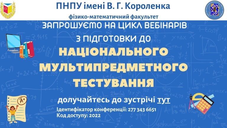 - ПНПУ імені В.Г.Короленка запрошує на цикл вебінарів з підготовки до блоку НМТ з математики