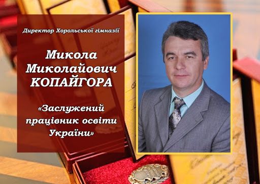 Микола Копайгора – сучасний керівник і вчитель, цілеспрямований, вольовий, енергійний. Він користується авторитетом серед батьків та громадськості міста, а його нагороди говорять самі за себе: Член Асоціації керівників шкіл України (АКШУ), лауреат Всеукраїнського конкурсу «100 кращих керівників», під його керівництвом Хорольська гімназія досягла високих результатів у Міжнародних освітянських виставках, конкурсах і проєктах: 4 бронзові та 2 срібні медалі виставок «Сучасні навчальні заклади», лауреат Всеукраїнського конкурсу «100 кращих шкіл України» (2006) у номінації «Школа педагогічного пошуку», громадських акцій «Флагмани освіти і науки України» (2010), «Літопис сучасної освіти та науки України», Всеукраїнських конкурсів «Модель навчального закладу» (2015) та «Модель методичної роботи» (2015). Гімназія стала призером (ІІІ місце) Всеукраїнського конкурсу-рейтингу загальноосвітніх навчальних закладів із роботи з обдарованими дітьми «Школа – джерело талантів» (2017).