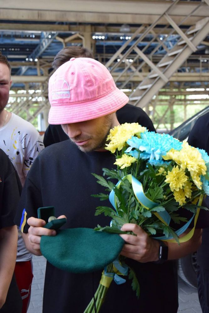 Сьогодні переможці Євробачення Kalush Orchestra повернулись в Україну. На кордоні їх зустріли наші прикордонники, які подарували фронтмену гурту зелений берет.