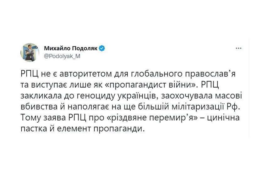 ❗️В ОП відреагували на цинічну пропозицію путінського патріарха кирила щодо «перемир'я» на Різдво 💬«Цинічна пастка й елемент пропаганди», – заявив радник глави