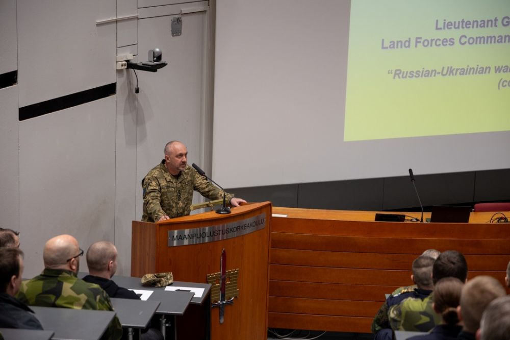 Під час зустрічі з офіцерами Командування оборони та слухачами Національного університету оборони Фінляндії Maanpuolustuskorkeakoulu поділився досвідом застосування підрозділів Сухопутних військ у російсько-українській війні. Акцентував на необхідності використання нових технологій та підходів до управління військами, внесення змін до сталих форм і способів ведення бойових дій.